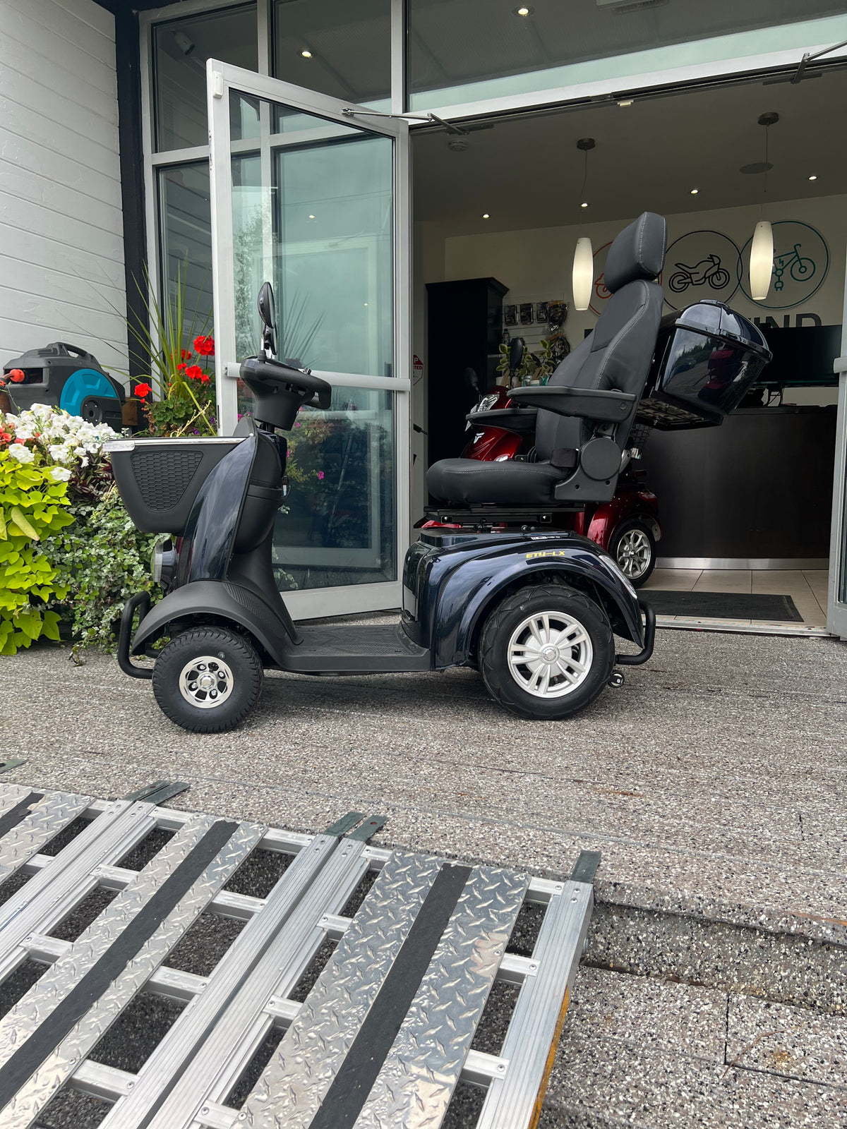 Our most popular model! Very safe and easy to manage. Easy for in-store and on different terrains like grass and gravel. Amazing front integrated basket to carry heavy items.